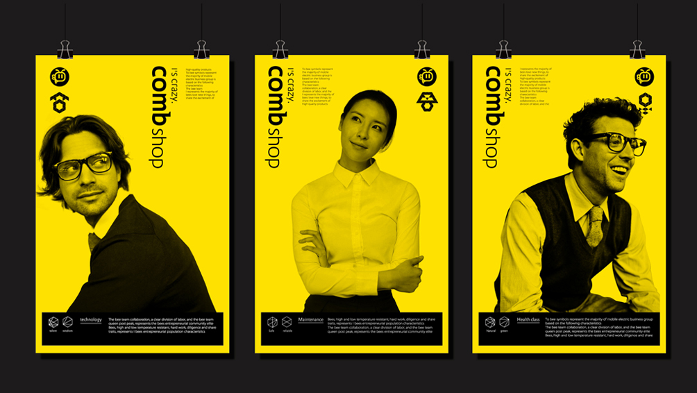 依据蜂巢商店“微商平台”的品牌定位,妙集团队为其制定了“人人经营的掌上商店”的品牌核心价值,拉近其与客户间的距离。在视觉识别系统的设计上,为贴合“蜂巢商店”的品牌名称,主色调采取蜂黄色,具有较强的视觉识别力。