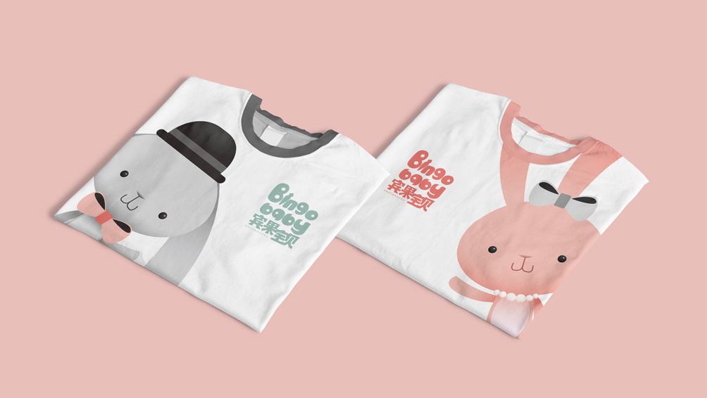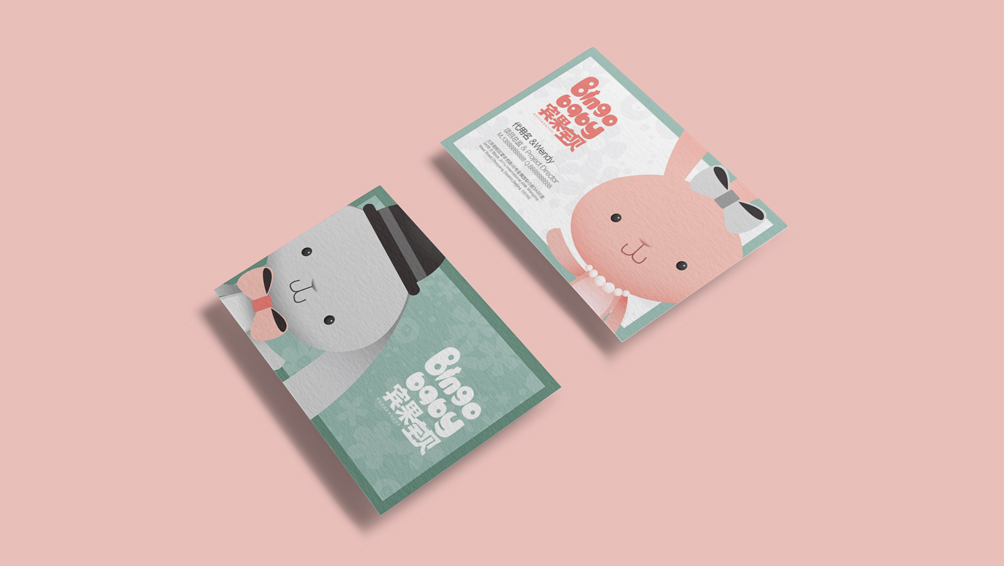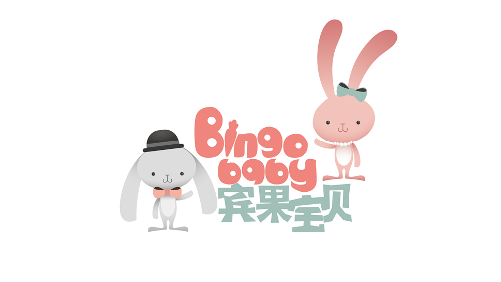 项目团队经过构思以表达美好人生的意义为基准,从趣味性和功能性入手,传递品牌特性,品牌标志中的兔子先生和兔子公主是可爱、美丽、绅士的化身,英文字母趣味性突出,每个字母都在模仿孩子的动作,如拔萝卜、起跳、捞鱼等,交织成一幅幅新奇有趣的狂想曲,体现出宾果宝贝图文并茂、生动有趣的教育方式,让孩子不知不觉掉入精彩有趣的世界,同时英文字母上的白色圈圈犹如一双双好奇的眼睛,用不同的眼睛看世界看生命,你会觉得世界和生命永远是精彩的。整个标志以孩子喜闻乐见的方式进行方案的创作,并落实在后期宣传物料的每个细节处理,从而极大的获得了孩子们的喜爱。