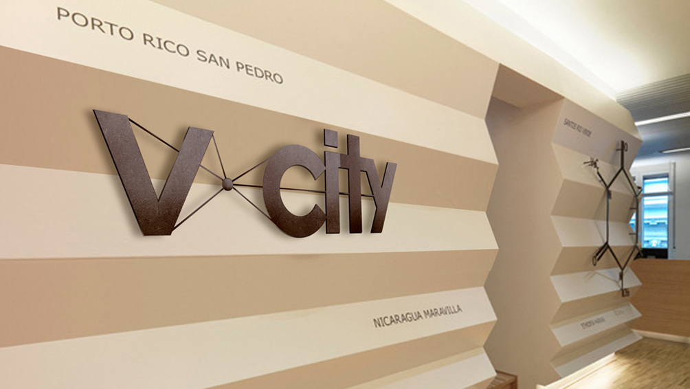 标志V-City未来城市,在城市与未来之间找到一个支点,然后以这个支点为中心向外散发出无数条射线,有力地连接起各路英雄的各种资源;V-City未来城市,代表着联通、力量、汇聚、壮大......