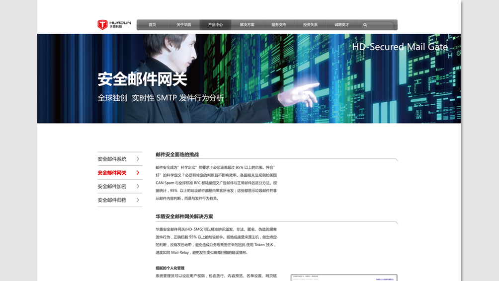 妙集团队为华顿科技做了网站的建设工作,新网站展示模式和设计手法切合华盾科技的公司的气质与定位。