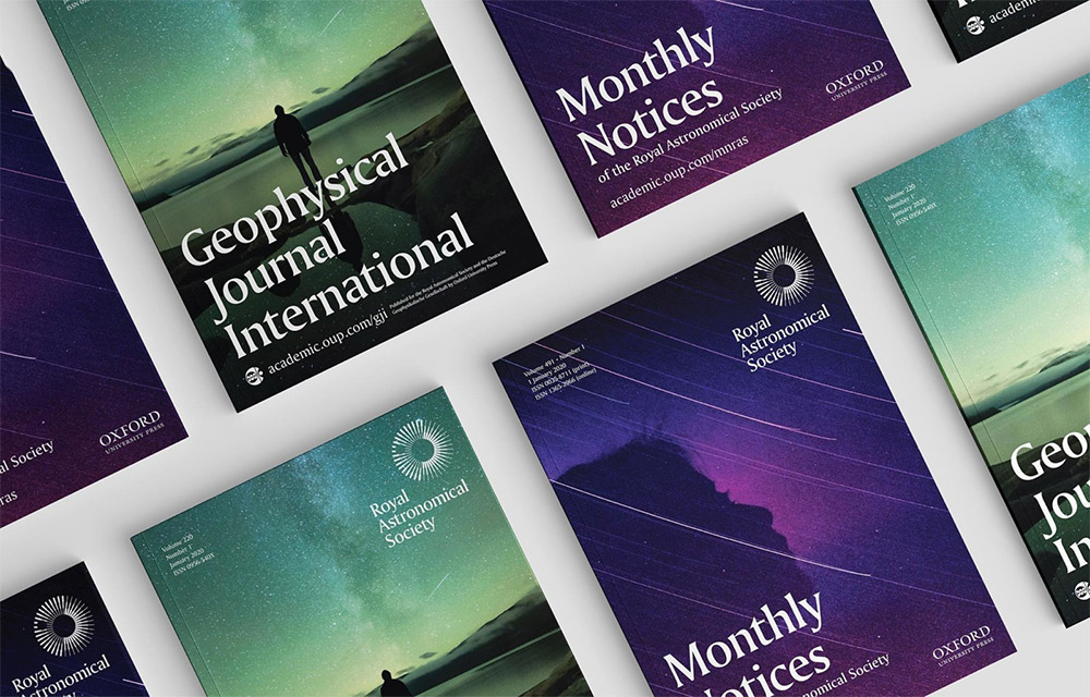 Johnson Banks从学会的多个方面着手开始设计新的品牌形象。 经过不断的探索,终于从学会的座右铭:「让任何事物都能被观察到」吸取品牌设计灵感。新的LOGO的展现形式是“反复旋转带有阶梯状辐条的望远镜”,以形成可以以多种方式接收信息的符号——以抽象化的眼睛和绕地球运行的月亮代表天文学会工作的许多不同方面。黑白灰的主色是受宇宙、行星和地质构造的启发。 新款标志已应用于刚刚出版的《皇家天文学会月刊》和《地球物理学杂志》。