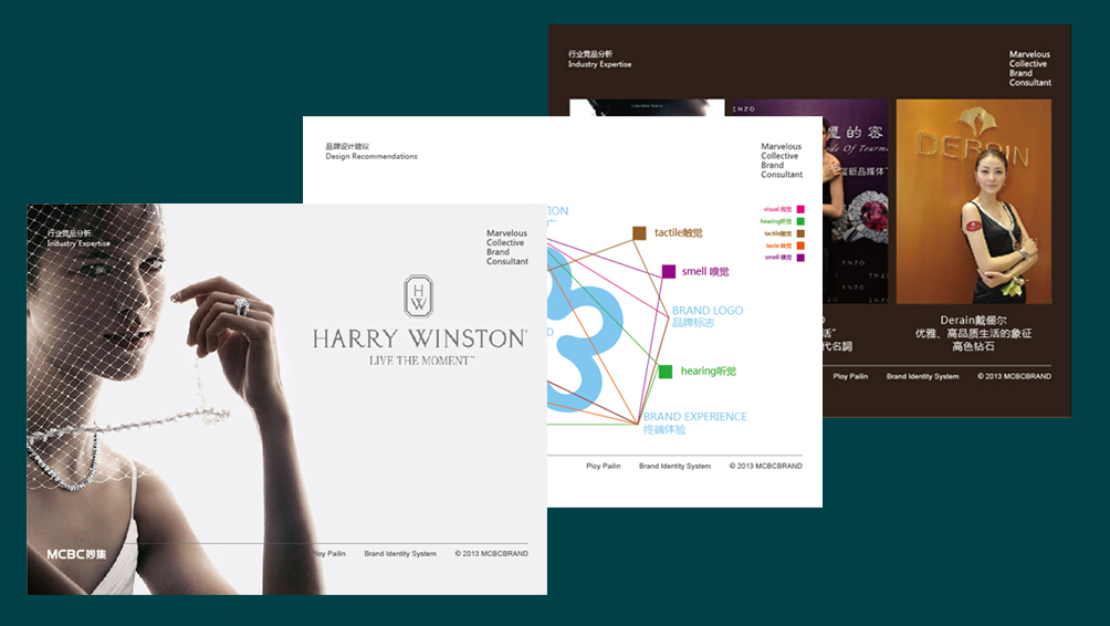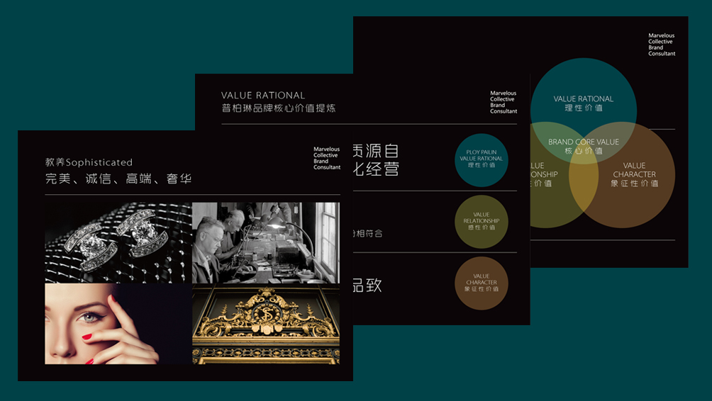 普柏琳经过30多年的沉淀与积累,早已在业界与客户心中树立了良好的品牌印象。特别是红蓝宝石的高端品质与设计制作工艺的精致严苛,使其得到了众多忠诚的老主顾。但其品牌识别系统与营销推广却不是那么尽如人意,与其卓越的产品竞争优势存在着较为严重的不符。如何帮助普柏琳梳理经营与市场战略并最终得出适合的品牌核心价值定位,如何保证新的品牌识别系统与其战略与核心价值相一致,成为妙集设计面临的第一个挑战;如何将已建立的全新品牌识别系统更好的执行实施,帮助普柏琳能够更好的开拓国际市场,则是妙集设计团队在该项目上的又一挑战。