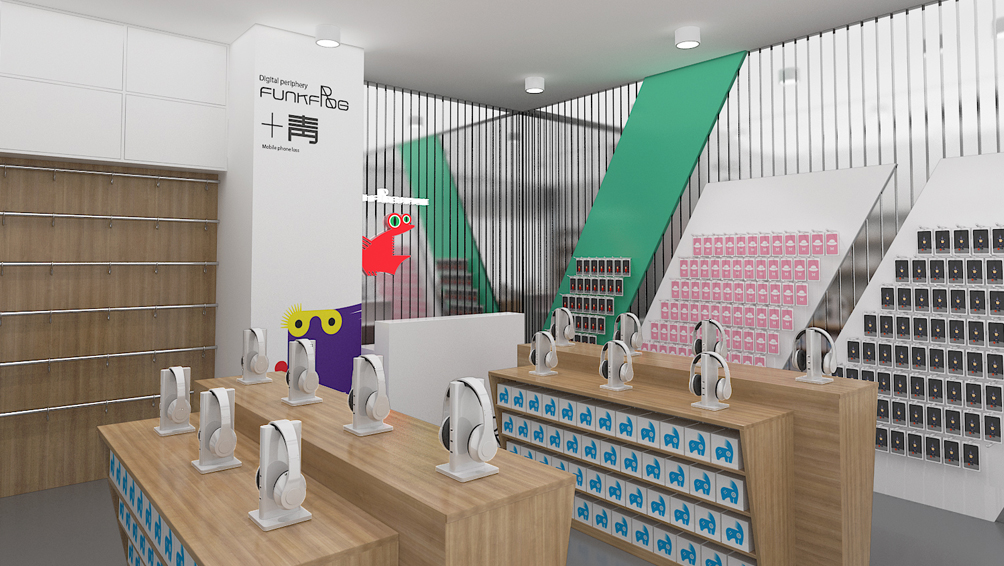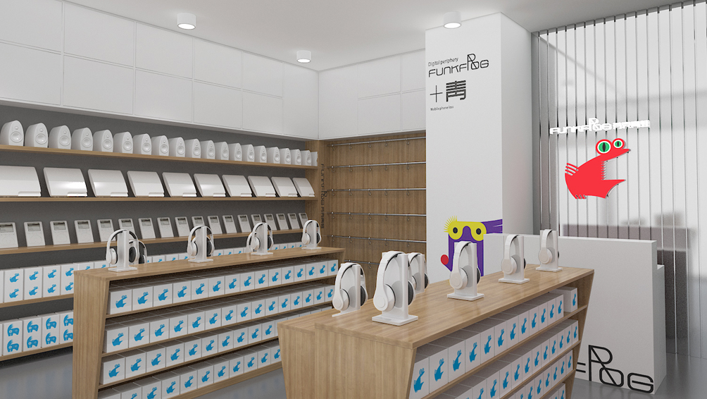 妙集的品牌策略设计团队结合市场调研分析,了解到大学生人群已经成为电子产品市场的主力军,相对生活水平极其富裕,有着极强的个性,拒绝复制,注重体验,更注重自我的风格表达。这一受众人群不但注重产品的品质,更加重视自我感觉,只要喜欢就好。妙集根据品牌选择价值模型,为其量身打造了“芬克青蛙(FUNKFROG)”这一品牌名称,“FUNK”是“灵活自由、动感、潮流、个性”的化身,“FROG”是一种“聪明、能干、正能量、趣味快乐”的表达。既将品牌的特征和个性诠释的淋漓尽致;又体现出芬克青蛙倡导科技让生活更有节奏感,每件产品的造型、工艺与韵味都被巧妙地结合在一起体现每件电子产品应用的个性,针对受众应用应用尖叫体验模式开发、O2O店铺革新、消费者体验营销等创新思维模式,致力于提供一个超出顾客期望的购物体验,除了提供全面的电子产品,还期望为消费者提供更多的增值服务。让消费者在体验产品时,感受到趣味与快乐。再者“芬克青蛙”字形结构简单,读起来朗朗上口,符合现代命名美学中的形式法则。