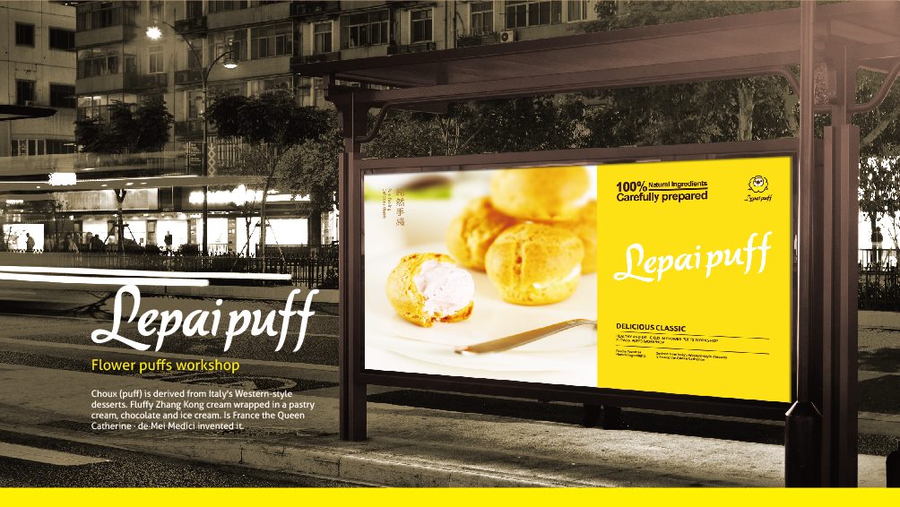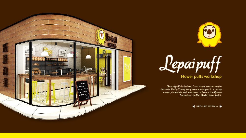 妙集设计团队针对乐派泡芙品牌标识、品牌应用乃至品牌策略进行设计。其中,妙集团队不仅面临着如何通过标识展现乐派泡芙的品牌形象,还面临着针对餐盒、店员服装、产品海报、灯箱等应用部分展现品牌形象。同时,如何为其树立完整统一的品牌形象,从而凸显乐派泡芙产品特点及品牌信息,即品牌策略的设计也是团队在本案中面临的一大问题。
