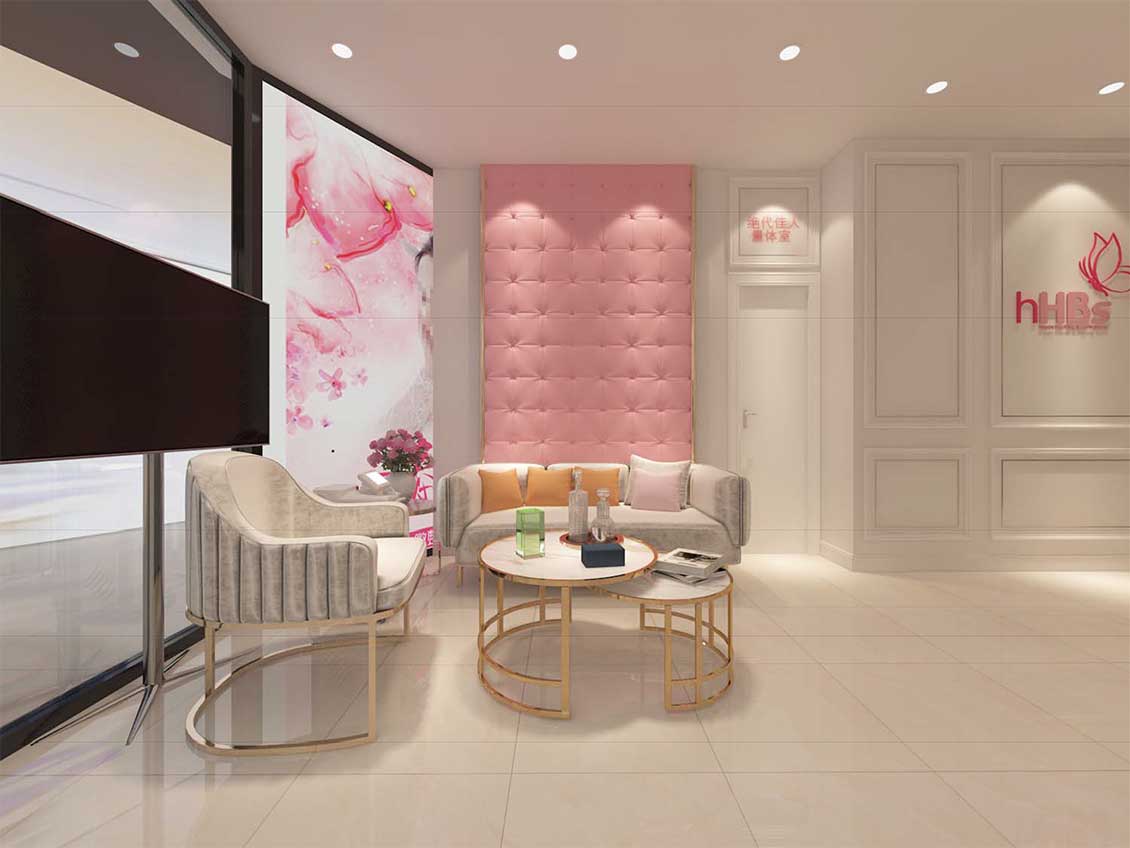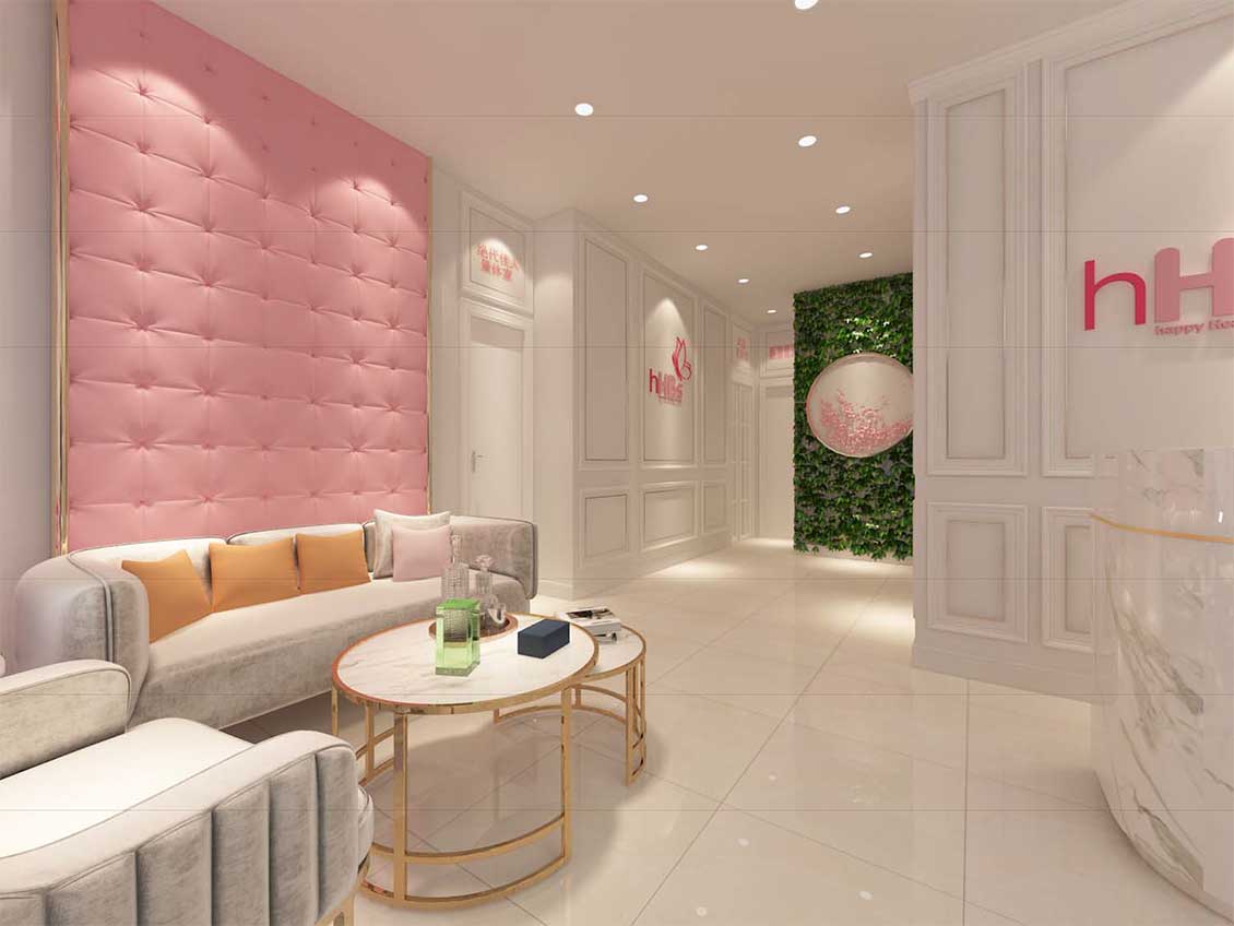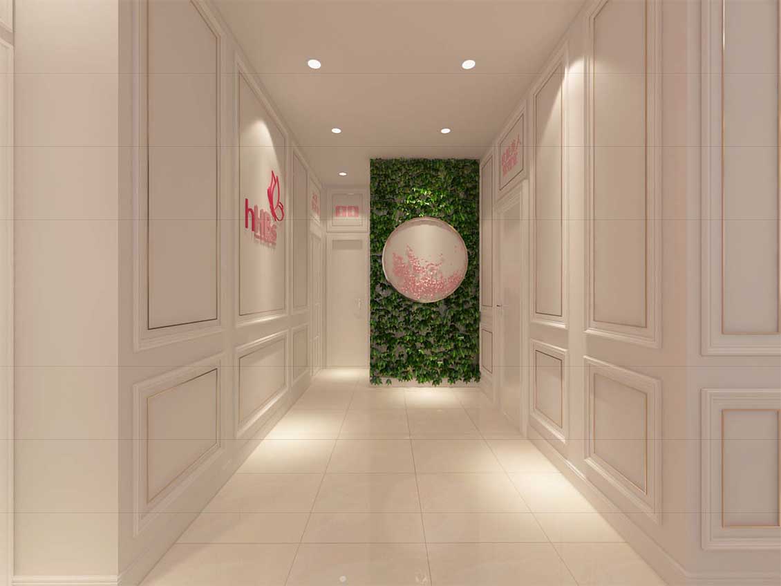 其中品牌的导视形象识别与室内空间设计同步设计,传达出品牌精致和柔美的形象,以及在医美领域的专业度。