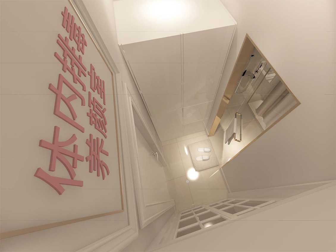 妙集团队设计了一系列的艺术图形及艺术装置结合鲜明愉悦的配色方案,体现创新性、疗愈感和整形文化特色,传达活力健康的艺术氛围,塑造温馨舒适的医院环境,令客户感到亲切,缓解压力与焦虑的不适感,增加对美容院的信任与归属感。