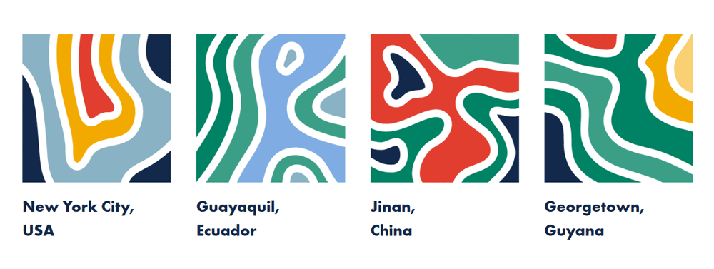 在品牌设计之初,mechanica的设计师们发现,自东航诞生并退出舞台以后,航空旅行发生了巨大的变化。航空旅行在过去给人们一种全新的、令人兴奋的体验,但现在人们更加关注目的地和未知的冒险。因此,在重新设计品牌标识时,不仅要反映航空公司的飞行过程,还要注意旅客的目的地。东航新标识的设计与传统航空公司的视觉设计明显存在诸多差异。这种符号不局限于某一地理区域,它能灵活地进行丰富的图形和色彩变化。新标志就像是地形图之上的等高线,灵感来自航空公司丰富的历史和基于地形图的探险家品牌。在颜色方面,深蓝色是美国东航原色的组合。浅蓝色和金黄色分别代表海洋、天空和太阳,代表航空公司为全球公民选择飞行时共享的空间。这种重塑设计使美国东航在业务和运营之上有了更清晰的表达。为了突出公司将服务的目的地,航空公司将设计一个独特的标志,并根据每个航线主标志的扩展进行设计。这些图标的精神来源于当地的地理位置和每个市场的文化色彩。例如,从下图可以看出,它将提供从肯尼迪国际机场到厄瓜多尔瓜亚基尔、乔治敦、圭亚那和中国济南的服务。