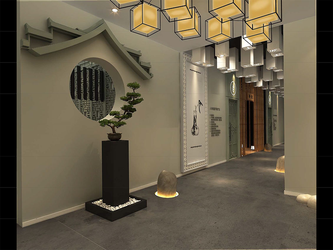 益康态项目整个空间设计中根据女性的特征创造出流线的空间造型,结合功能布局,创造出流线的灵动的空间氛围。