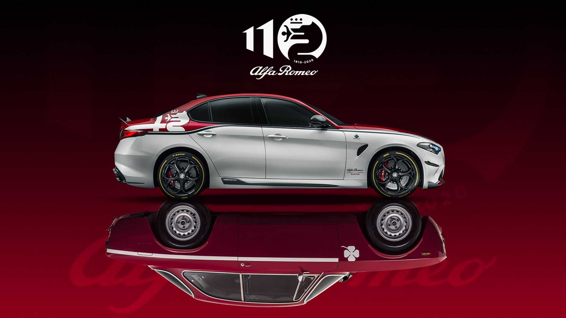 110周年纪念标志由数字“110”和“Alfa Romeo”组成。 前两位数字“1” ,以透视的空间感排列,反映了从过去的阿尔法·罗密欧到现在的过渡。 标志中被汽车标志中的蛇代替的数字“0”是整个视觉设计中最易辨认和重要的设计元素之一。 在阿尔法·罗密欧的标志设计中,吃人的蛇代表着公元5世纪在米兰被维斯孔蒂家族杀死的蛇,十字架代表着十字军东征的维斯孔蒂家族,它成为了意大利米兰的象征城市的市徽。