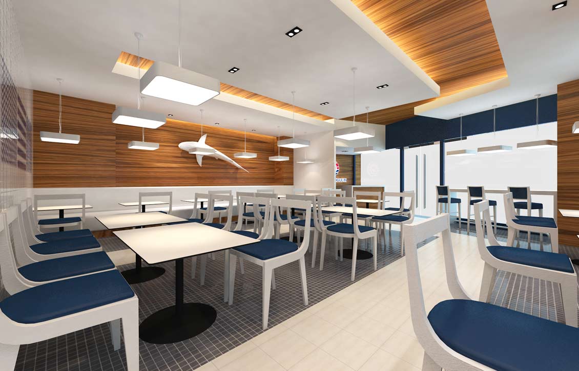 通过多次的沟通与交流后,妙集设计帮助小古林确定了“国人海鲜营养快餐领跑者”的战略定位,并以“营养与健康”作为主要诉求,使其凭借自身营养高,味道鲜美,生态健康的独特价值迅速在快餐市场中独树一帜,脱颖而出。品牌个性价值的提炼着力于产品的新鲜与营养,“新鲜看的见,营养吃出来”准确的达到了这一诉求,也正迎合了小古林对最美海鲜的标准“永远不会睡觉的海鲜”。在策略定位的指导下,品牌形象设计以海洋、鱼虾与餐具形象为基础元素,准确地表现出小古林海鲜快餐的独有特征。并在此基础上将具有独特性的品牌符号与色彩,延展到终端店面的设计。使其整个品牌无不传达出对最美、最好海鲜的追求与承诺。