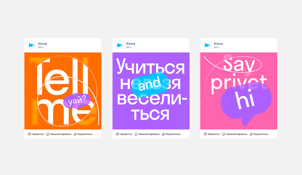 2月27日,skyeng在其官方博客之上发布了全新的标志。根据新闻稿,新品牌形象由莫斯科设计公司Shuka设计开发,这是Skyeng成立以后首次针对不同受众对公司进行全新的品牌重塑。Skyeng表示,经过8年的发展,公司已不再是一家单一的公司,拥有数十种教育产品。学生和教师也在成长,但帮助公司沟通的视觉形象并没有改变。”我们希望更准确、更直观地转换我们的价值观。在服务、产品和品牌的多样性之中,我们找到了一个适合我们的新形象。