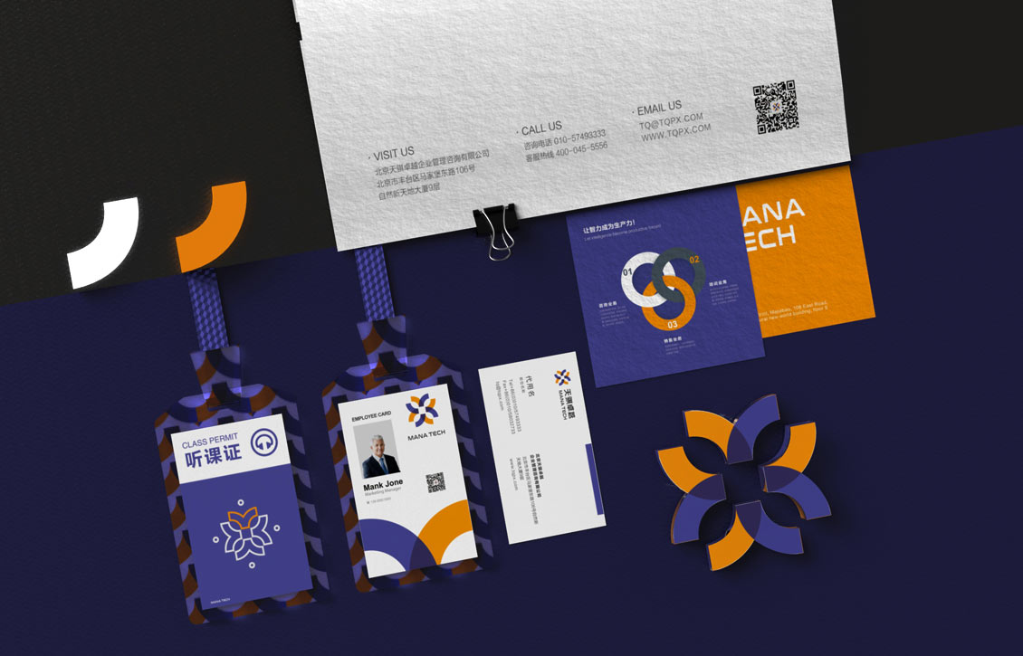 首先天骐卓越主要经营企业管理系列课程,因此妙集团队在为其设计开发标志及VI应用时需要将企业品牌理念以更加直接的方式传达出品牌个性,其次,设计团队选择的颜色、造型、风格等都必须明确设计主题,画面简洁但须有足够的辨识度,色彩甄选需强调高端稳重搭配协调。因此妙集团队所要面临的最大挑战,即是如何将品牌的专属性和认知性在造型结构上和视觉上形成统一,进而体现该品牌的特色和内涵。