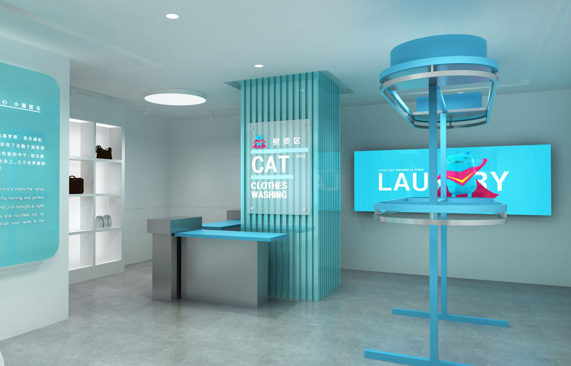 “干净的每一天,干净的世界”以极具感染力和精准传达品牌核心竞争力的语句将品牌价值简短而有效地进行传播,具有互联网特色的品牌识别符号与品牌诉求紧密相连,将人与人的联系视觉化,标志整体是一个颇具神秘色彩的超人猫造型,小猫品牌视觉的演化,之所以加入超人作为设计的核心元素,是借鉴了超人的独特属性,超人是具有正义感的象征、它喜欢特立独行、神秘而叛逆,喜欢冒险,拟人化设计手法,为标志添加生动有趣而神秘的个性元素,超人服饰的运用,炫酷中又带着几分真性情色彩,标识主色调蓝色与粉色的运用,致力用蕴含巧思的设计拉近和梦想生活的距离。以小猫超人的力量,让这个世界更加纯净美好,为世界每个人带来更崭新更有空的生活。后期并延伸出一系列的品牌体验——微信客户端界面、VIS手册、宣传海报等。这一切都在品牌空间中得到升华,使小猫搓衣的品牌形象迅速占据消费者心智,建立起一定的知名度。