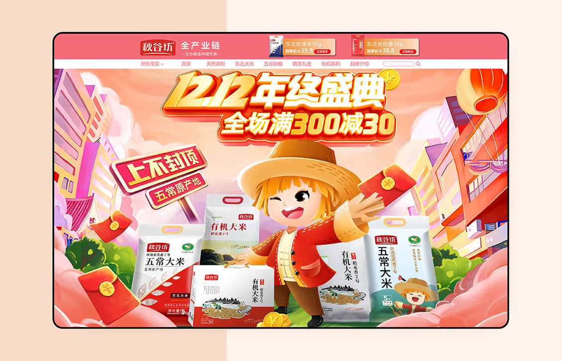 眼光独到,才能占得先机。隶属辽宁圆上圆电子商务有限公司的秋谷坊,植根农业,围绕有机大米、绿色大米、有机杂粮三大品类,拓展50余规格产品,围绕天猫、京东等电商平台,打造新型农业品牌。金麟岂是池中物,一遇风云便化龙。2018年秋谷坊与妙集携手合作,妙集对秋谷坊电商做了品牌战略梳理,为产品线做了系统性规划以及包装创意设计、推出全新的IP形象及打造秋谷坊品牌的视觉锤。秋谷坊在全面升级后,销量和销售额一路飙升,在天猫、京东等平台一直稳居前列。其中有机大米等单品同品类中稳居前三。